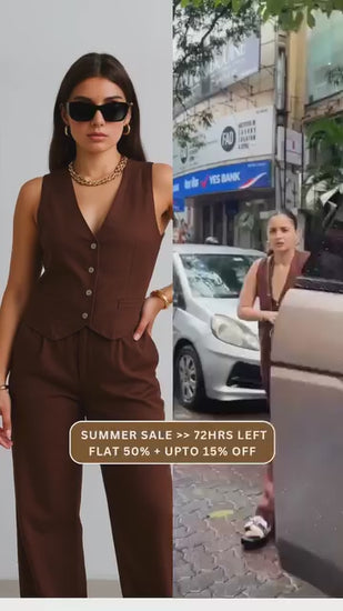 Alia Bhat Muse Chocolate Co-Linen Vest Coat & Trousers