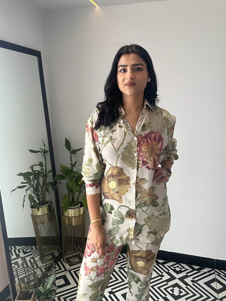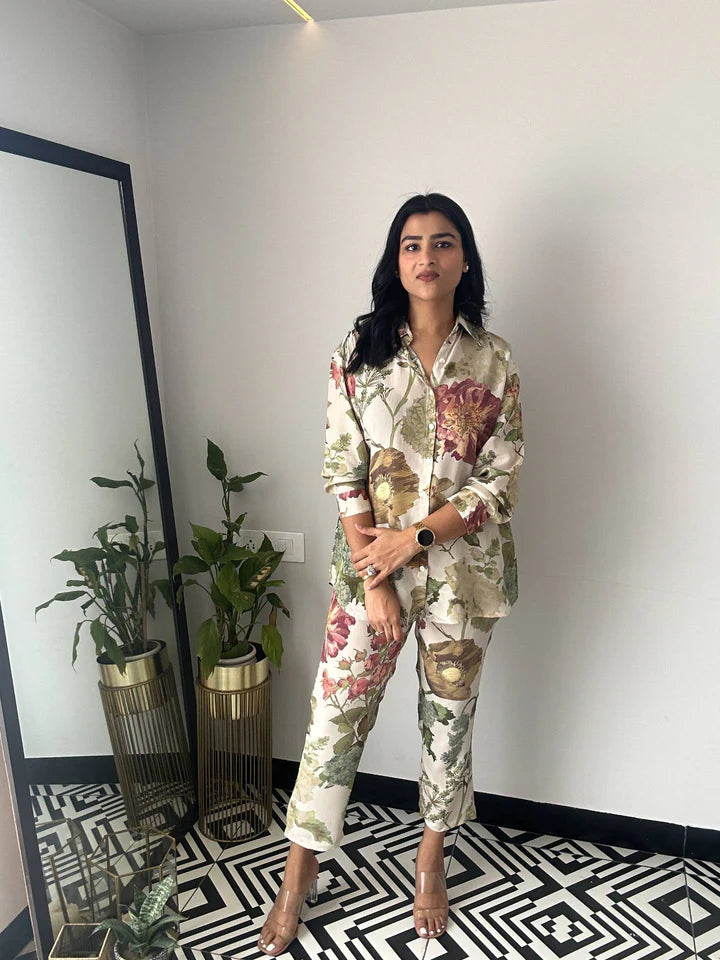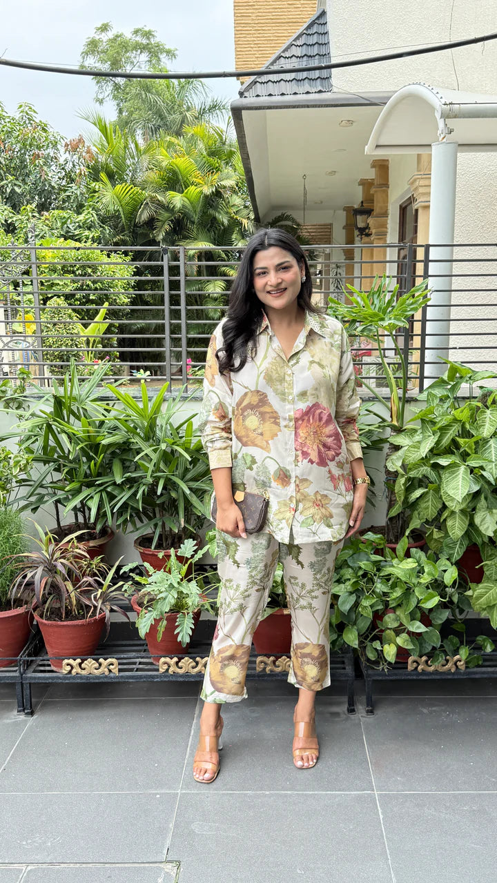 Experience the classic beauty of black and white florals with our Satin Crepe Co-ord Set. This stylish two-piece set is made from soft, silky imported crepe, featuring bold floral prints that make your outfit pop.