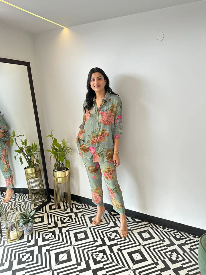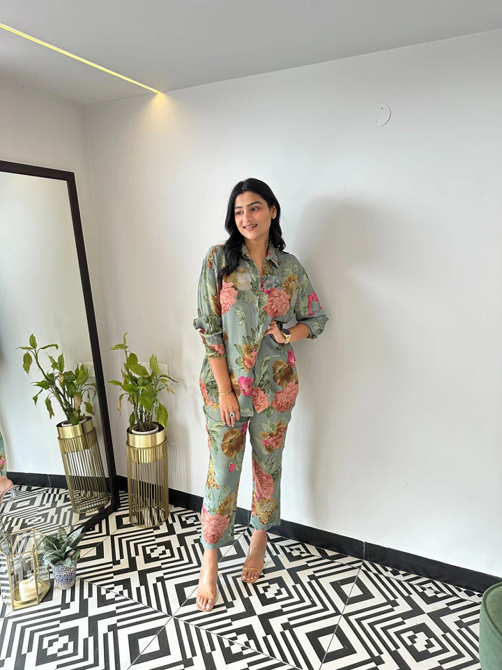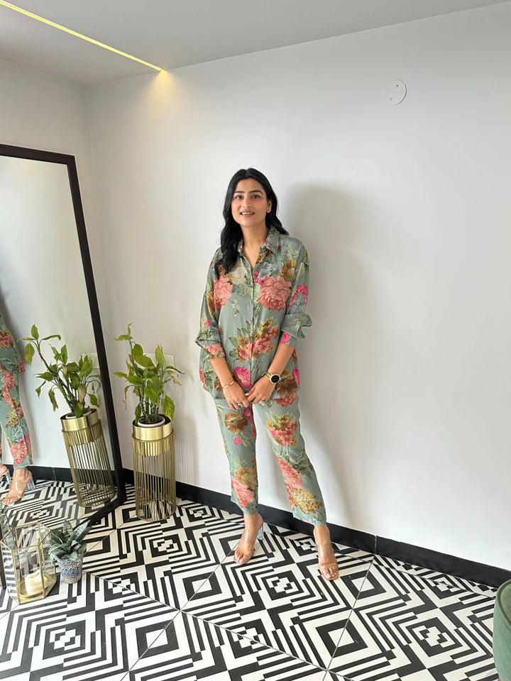 Experience the classic beauty of black and white florals with our Satin Crepe Co-ord Set. This stylish two-piece set is made from soft, silky imported crepe, featuring bold floral prints that make your outfit pop.